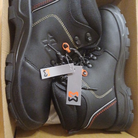 Nahkaiset, vettä hylkivät työkengät teräskärkisuojalla ja naulaanastumissuojatulla välipohjalla.