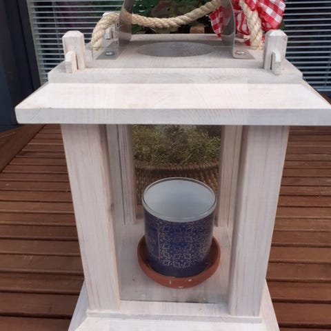 Itse lyhtyosan korkeus n. 25 cm ja päällä olevan metallikuvun kanssa n. 30 cm. Pohjalevyn koko n. 16,5 x 16,5 cm.
