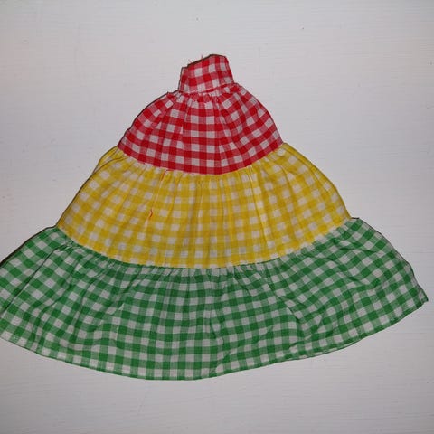 Vasemman puoleisen saumaompeleita on korjattu. Oikeanpuoleinen on ollut barbien päällä ja venynyt ja siitä puuttuu nepparit.