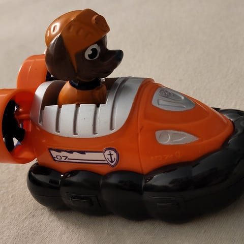 Leikitty, yleisilmerltä siisti ja ehjä Ryhmä Hau poliisiauto. Kuljettajaa ei saa irti. Lähitarkastelussa pientä käytönjälkeä. Sopivan kokoinen pienen käteen., ei liian painava. Mittasuhteena kuva kynän kanssa