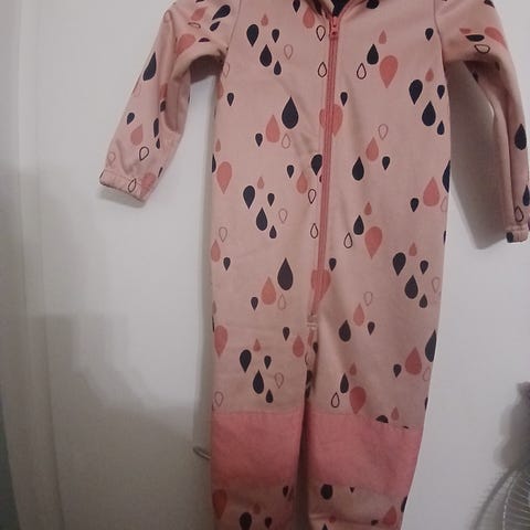 Myydään kaikki kolme pakettina. Sofshell haalarit koko 110. Punainen kuorihaalari koko 104.