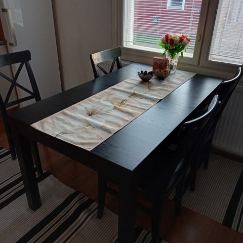Myydään UUSI kuuden hengen ruokailuryhmä. Tuolit erittäin hyvät istua. Ollut käytössä 3 viikkoa.