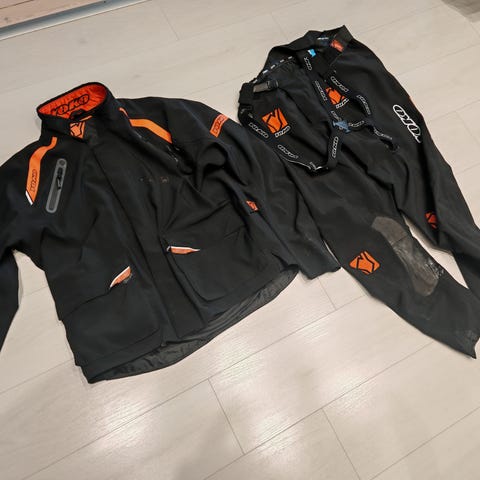 Hyvässä kunnossa oleva Yoko merkkinen ajoasu. Ei kaaduttu. Vetoketjut kaikki ehjiä. Takissa suojat olkapäissä ja kyynerpäissä. Takki koko xxl ja housut xl, mutta vastaa enemmän koko L-Xl.