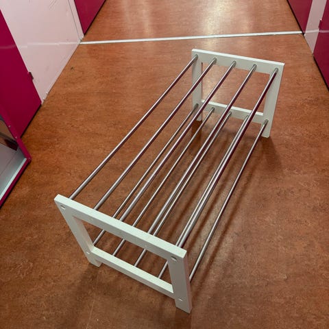Käytännöllinen kenkien säilyttämiseen eteisessä tai vaatekaapissa. Hylly on kokoontaitettava. Metallia, harmaa.