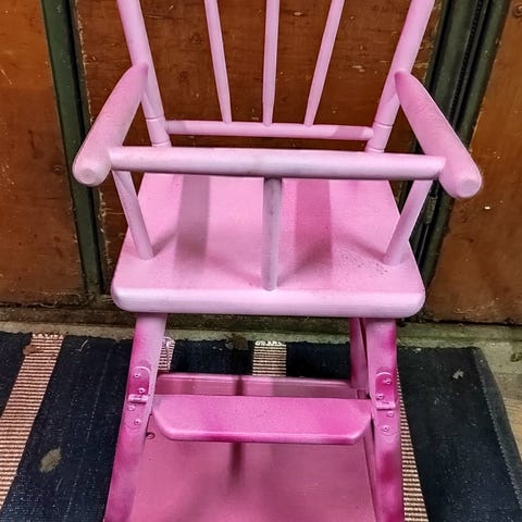 Yhdellä lapsella käytössä ollut syöttötuoli. Tuolissa 5 piste valjaat ja tarjotinpöytä, joista molemmat saa halutessaan pois. Hyvässä ja siistissä kunnossa muuten, mutta tarjotinpöydässä naarmuja.