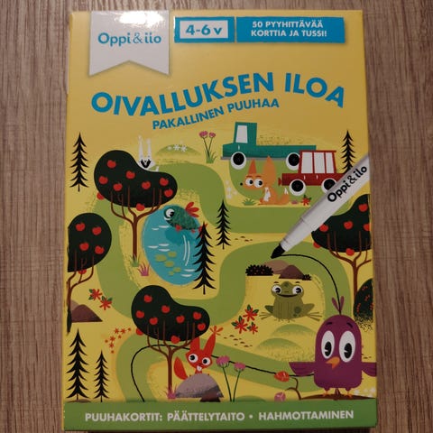 Myydään oppi ja ilo puuhakortit. Ikäsuositus 2-4v.