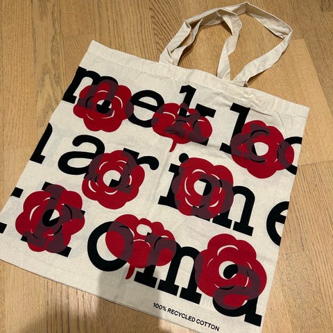 Logokassi, kukka, unikko, kassi, laukku, iso laukku, ostoskassi, unisex