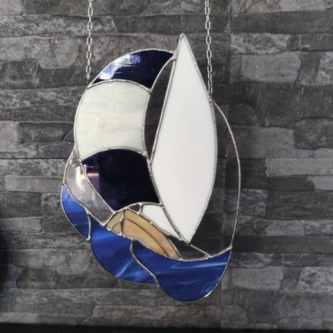 Purjevene lasitaulu kahdella ripustuslenkillä