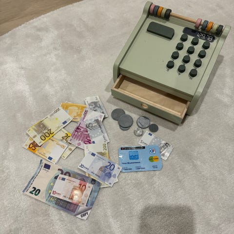 Goki Puiset Leikkirahakassa sisältää puisen kassakoneen, jossa on laskin, luukku kolikoille ja seteleille sekä puhelinosa. Mukana on erilaisia leikkirahaseteleitä ja kolikoita, jotka on valmistettu puusta ja paperista. Leikkiväline soveltuu lasten leikkeihin ja opettaa rahankäsittelyä.