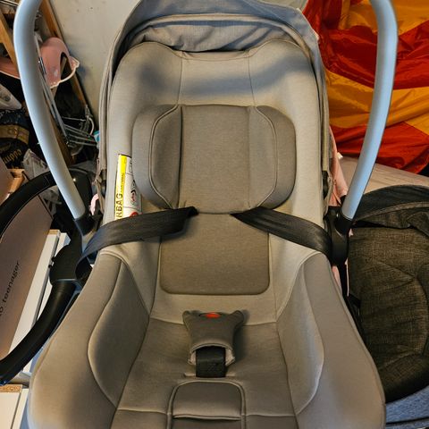 Itse Uutena ostanut. Turvakaukalo ja telakka ostettu 6/22 ja ollut käytössä kahdella vauvalla. Turvaistuin ollut käytössä yhdellä lapsella ja ostettu 3/23.