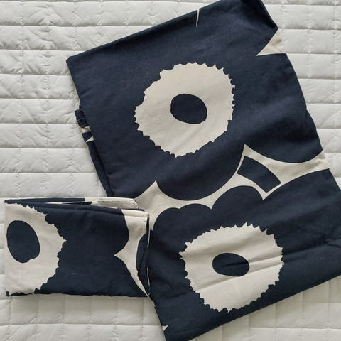 Uusi/ käyttämätön Unikko- pussilakana (150x210cm) & kauden logokassi mukaan.
