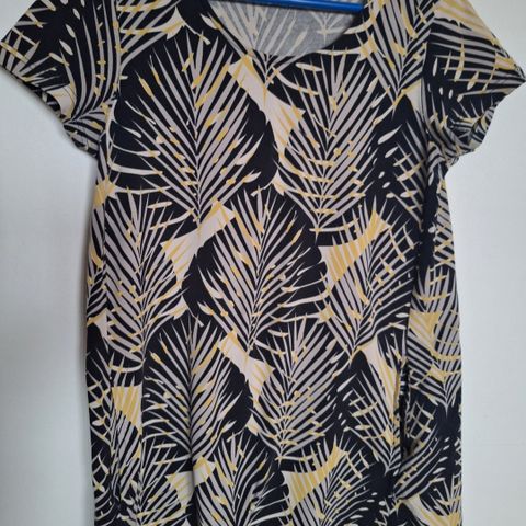 Mukava, kivasti laskeutuva Nosh- pitkähihainen paita/tunika. Laput leikkasin pois, vaikka käytetty vain pari kertaa. Pyöristetty helma ja V- kaula-aukko. Väri on hernesopan vihreä, kuviot mustat.
