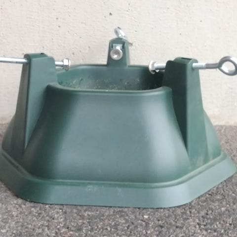 Hyväkuntoinen metallinen joulukuusenjalka myynnissä.