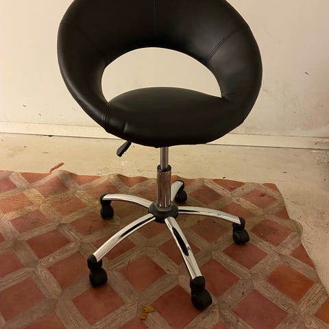 kohtalaisen kuntoinen IKEA SKRUVSTA työ/ meikkituoli. hieman istuinosa tummentunut, mutta jos vaikka taljan laittaa istuinosan päälle niin saa oikein hyvän.