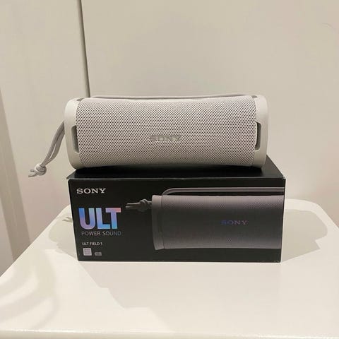 Sony ULT kannettava kaiutin, jossa on tehokas basso ja Bluetooth-yhteys. Laite tarjoaa jopa 12 tunnin akunkeston ja on suunniteltu liikuteltavaksi äänentoistolaitteeksi.