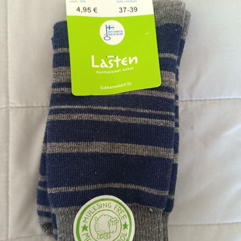 Tytär ostanut upeat sukat ja maksoi kuulemma yli 7 euroa per sukka (eli yhteensä yli 22e). Hän ajatteli antaa näitä pojan joululahjoiksi - mutta poika onkin juuri kertonut jalkojensa kasvaneen jo kokoon 42. Eli nämä lahjat nyt menneet "pieleen"... :-)
