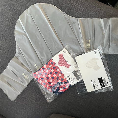 Puhallettava tukityyny kahdella pestävällä päällisellä. Ostettu Antilop-malliseen syöttötuoliin. Toridiili tai nouto Klaukkalasta.