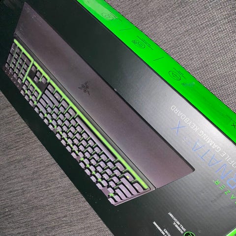 Vanha näppäimistö ja hiirimatto ylimääräisenä.
