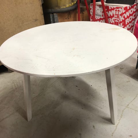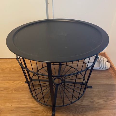 Moderni Maskun pyöreä sohvapöytä, mdf-levyä paino 6kg, pinnassa käytön jälkiä muuten siisti.