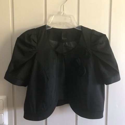 Ihana lyhyt bolero, joka lähes käyttämätön. Materiaali ohutta neulosta jossa mukana kimaltavaa lankaa. Myyn koska itselle pieni. Ostettu muistaakseni Vilan liikkeestä, merkit tullut aikanaan poistettua.