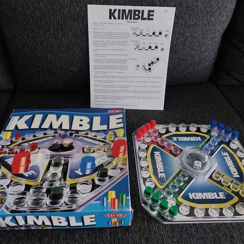 Tactic Junior Kimble lautapeli sisältää pelilaudan, nopat, pelinappulat ja ohjekirjan. Pelissä on värikkäät pelinappulat ja noppa, ja se on suunniteltu lapsille.