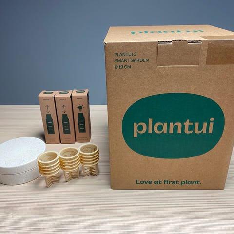 Myydään avaamaton läpinäkyvä Plantui 6 älypuutarha ja siihen liittyviä vara- ja lisäosia.