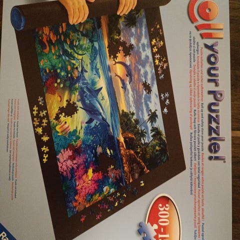 Ravensburger palapelimatto, johon mahtuu 1500 palan palapeli. Maton voi rullata, jolloin keskeneräinen peli menee pienempään tilaan säilytykseen.