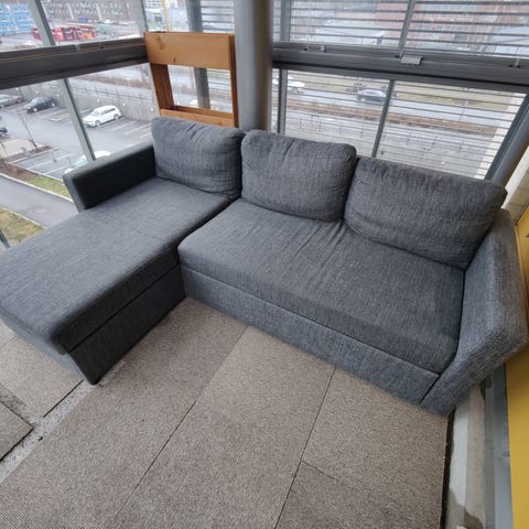 Koira vähän kokeillut sohvaa, yksi jalka tarvitsee kunnostusta. "Taka" verhous myös lähtenyt. Muuten ihan perus vuodesohva ja toimiva. Alle vuoden vähäisessä käytössä.