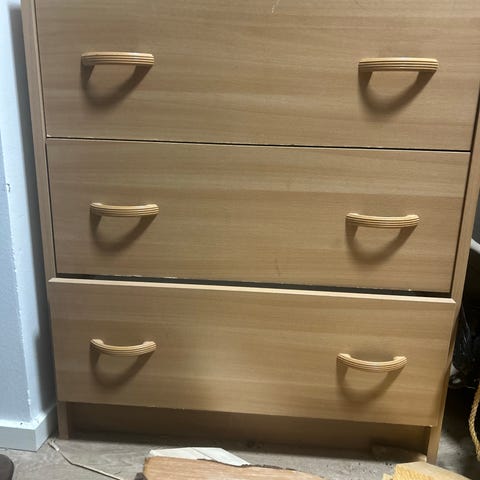 Annetaan lipasto, kolme rottinkista koria tulee mukaan.
