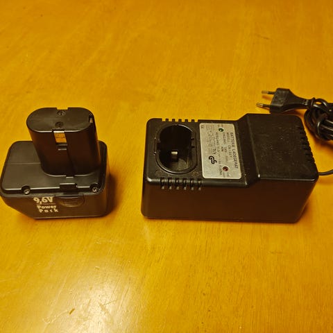 Hyväkuntoinen Parkside-akkulaturi vanhemmille 18V NiCd/NiMH-akuille (esim. vanhat Parkside-työkalut).