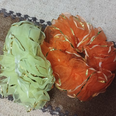 Satiininen hiusdonitsi setti vaaleanpunainen ja keltainen