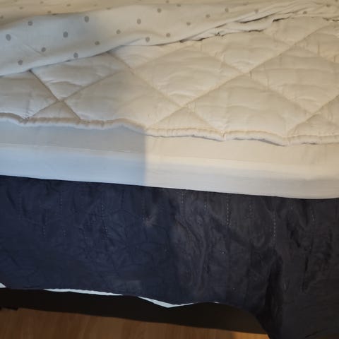 Satunnaisessa mökkikäytössä olleet pinnasängyn laadukas patja (Anne &Mikael), Ikean Lenast -peitto ja tyyny.