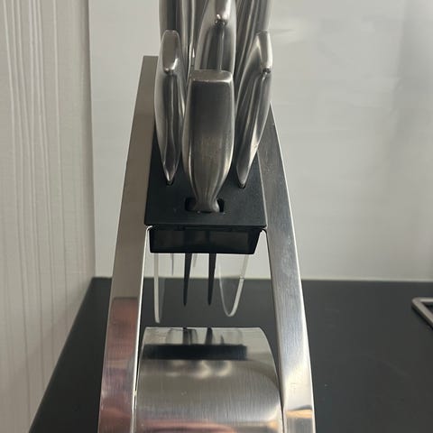 Hackmanin veitsisetti ja tukki. 5 veistä, teroitin sekä lihahaarukka. Hyvä kunto.