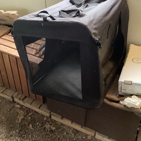 Myydään myös autossa ollut pienempi kuljetushäkki.