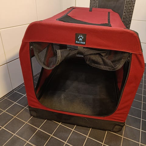 Myydään hyvässä kunnossa iso kevythäkki. Ollut pienellä koiralla pelipaikkana.