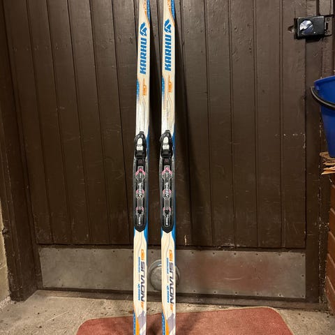 Karhun Optigripit 139 cm. Rottefellan NNN siteet. Pohjat erinomaisessa kunnossa, naarmuttomat. Päälipinnassa joitakin naarmuja. Toisen suksen peräosassa pohja irronnut hieman, liimattu ja hiihdetty ongelmitta sen jälkeen. Kuva tästä.