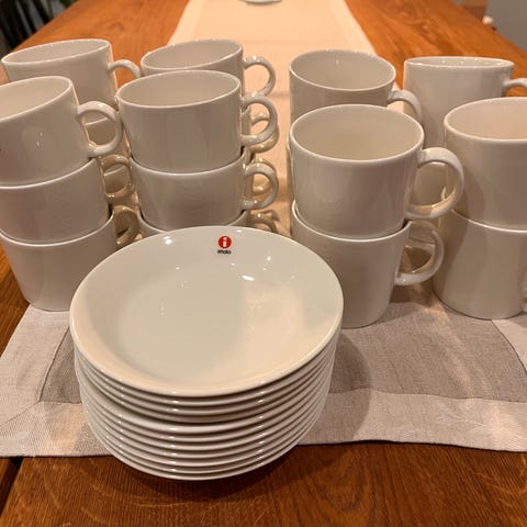Virheettömiä. Suunnittelija Kaj Franck. 12kpl kuppia, 12kpl aluslautasia.