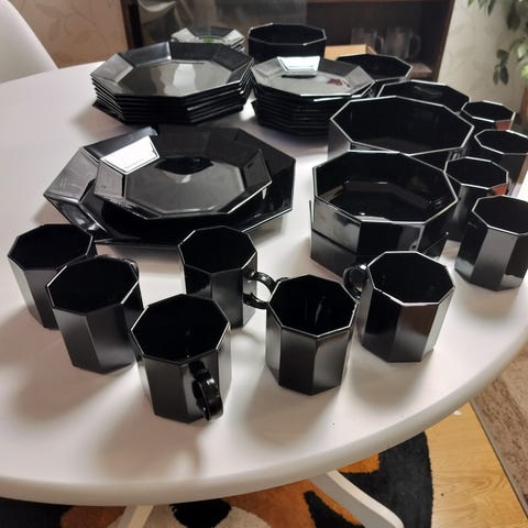 Myyntiin turkoosi kaunis astiasto. 6 pientä ja isompaa lautasta. 5 tee kupoia ja 9 kahvikuppia. Nouto Muotiala/Korkinmäki