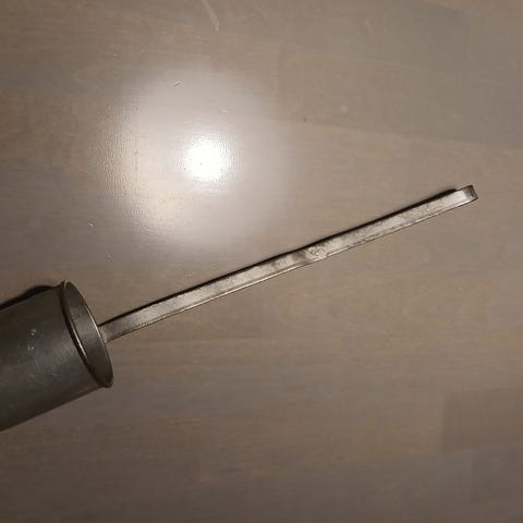 Kellokosken tehtaan valmistama Lusikka-haarukka, varressa Int/44. Liitoskohta jämäkkä.