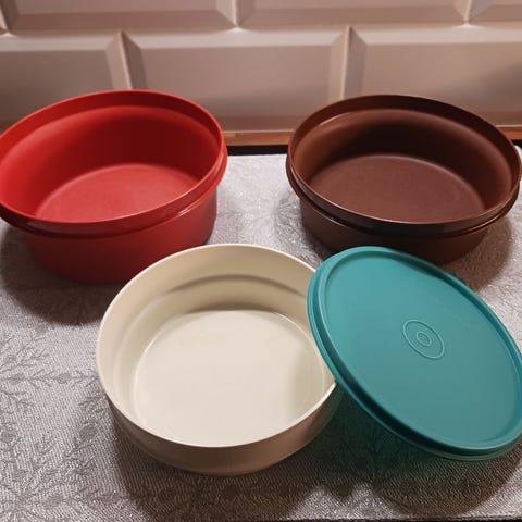 Käytetyt ja ylimääräiseksi jääneet tupperin eri väriset kulhot. 5kpl.