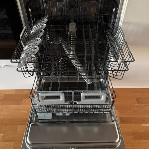 Samsung integroidut astianpesukoneet, sisäänrakennettava malli. Astianpesukoneessa on useita koreja astioiden järjestelyyn ja pesuainelokero.