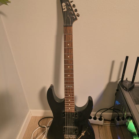 ESP M-50 sähkökitarat musta väri. Kitara on sähkökitara, jossa on 6 kieltä ja kiinteä tallarakenne. Sopii erilaisiin musiikkityyleihin ja harjoitteluun.