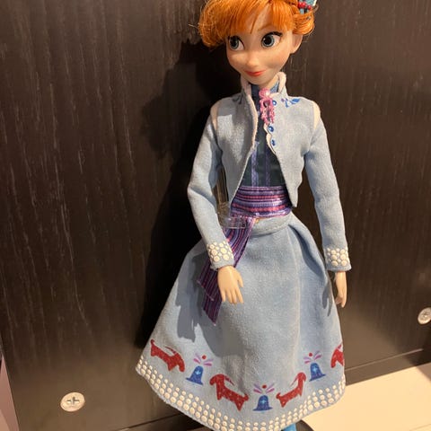 Disney Frozen -merkin Anna-nukke, jolla on päällään tuttu matka-asu. Täydellinen mielikuvituksellisiin leikkeihin.