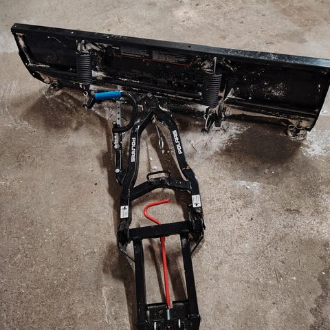 Myydään mönkijän puskulevy. Leveys 135 cm. Ollut vähällä käytöllä.