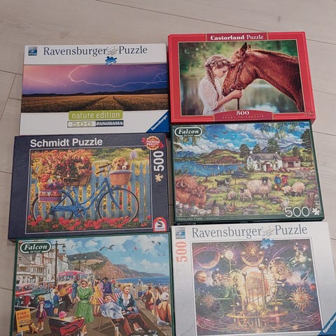 Kuvien mukaiset palapelit, mielellään kaikki yhdessä. Kaikki palat tallella.