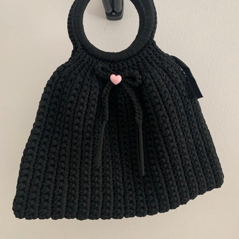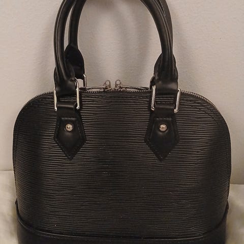 Tyylikäs musta käsilaukku. Mitat enimmillään noin 29,5 x 23 cm. Pohjan syvyys noin 12 cm. Hyväkuntoinen. Materiaalista ei varmuutta, mutta esim. kantokahvassa vaikuttaisi hyvinkin nahkamaiselta.