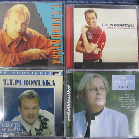 Myydään kotimaisten artistien cd-levyjä 3,00 euroa kappale. Kaikki cd:t kuunneltu ja todettu toimiviksi. Cd:ssä voi olla naarmuja & kansipapereissa jälkiä/omistuskirjoituksia, mutta cd-kotelot ovat ehjät. Postituskulut ostajalle ja noutokin sovittavissa.