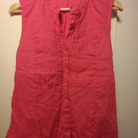 Laadukkaan tuntuinen vaaleansininen pellavatoppi. Koko 38. Leveys kainalosta kainaloon noin 50 cm. Pituus niskasta helmaan noin 64 cm. Hyväkuntoinen, tosin hiukan kaapissa rypistynyt.