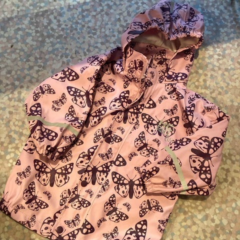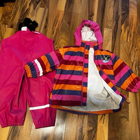 Hyvässä kunnossa oleva sadeasu. En löytänyt virheitä, lenksutkin tukevasti kiinni housuissa!