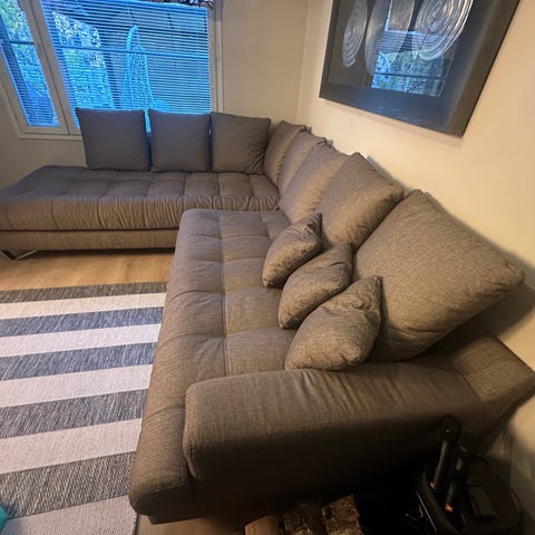 Myydään siisti ja ehjä Pohjanmaan kalusteen kulmasohva jossa kaksi sähköisesti kääntyvää mekanismia.